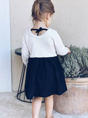 * Dress made of a 100% cotton knitted top and a 100% cotton skirt * Knot at the back * Knitted details on the sleeves * Color: Sand and black 100% cotton, OEKO-TEX certified fabric.